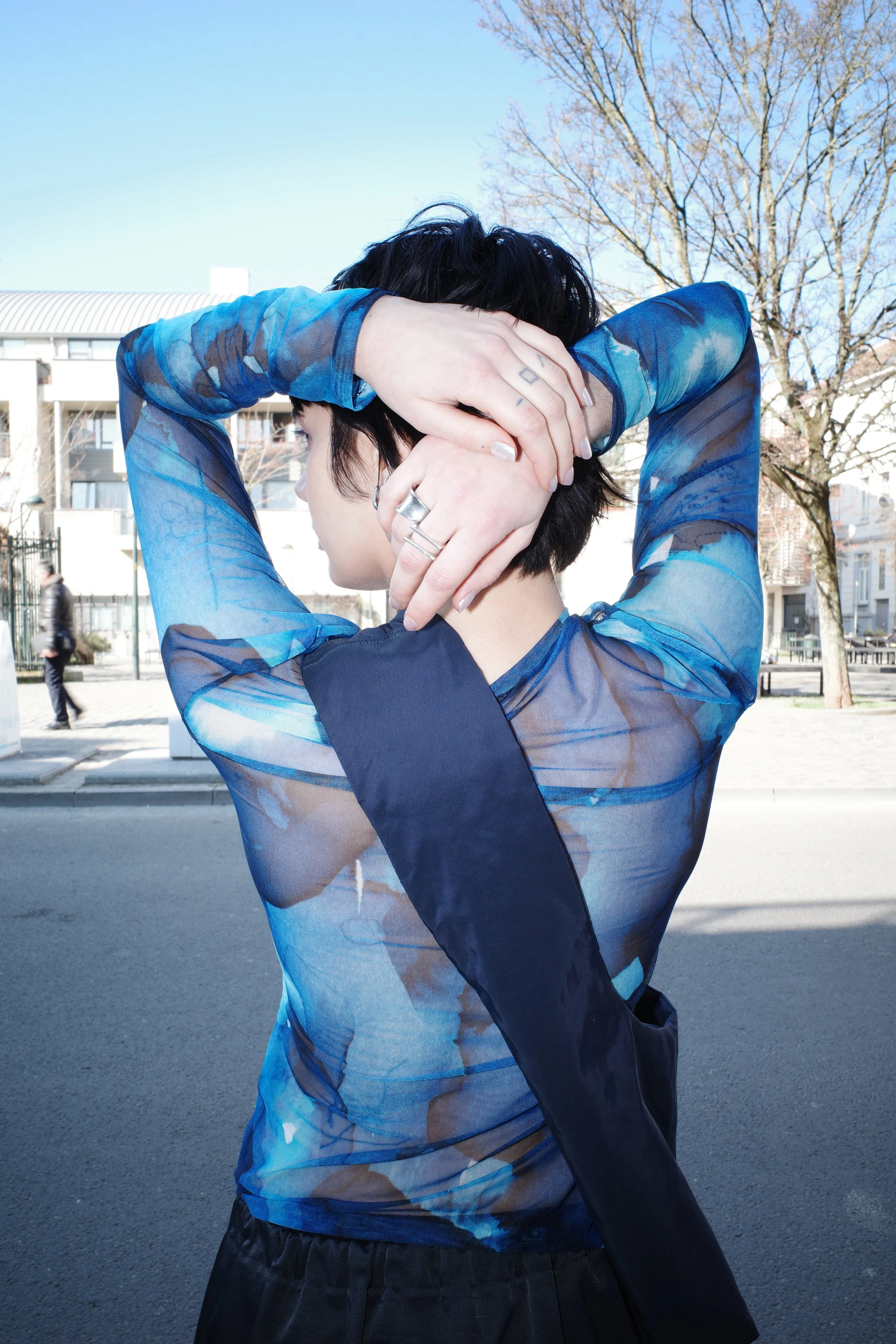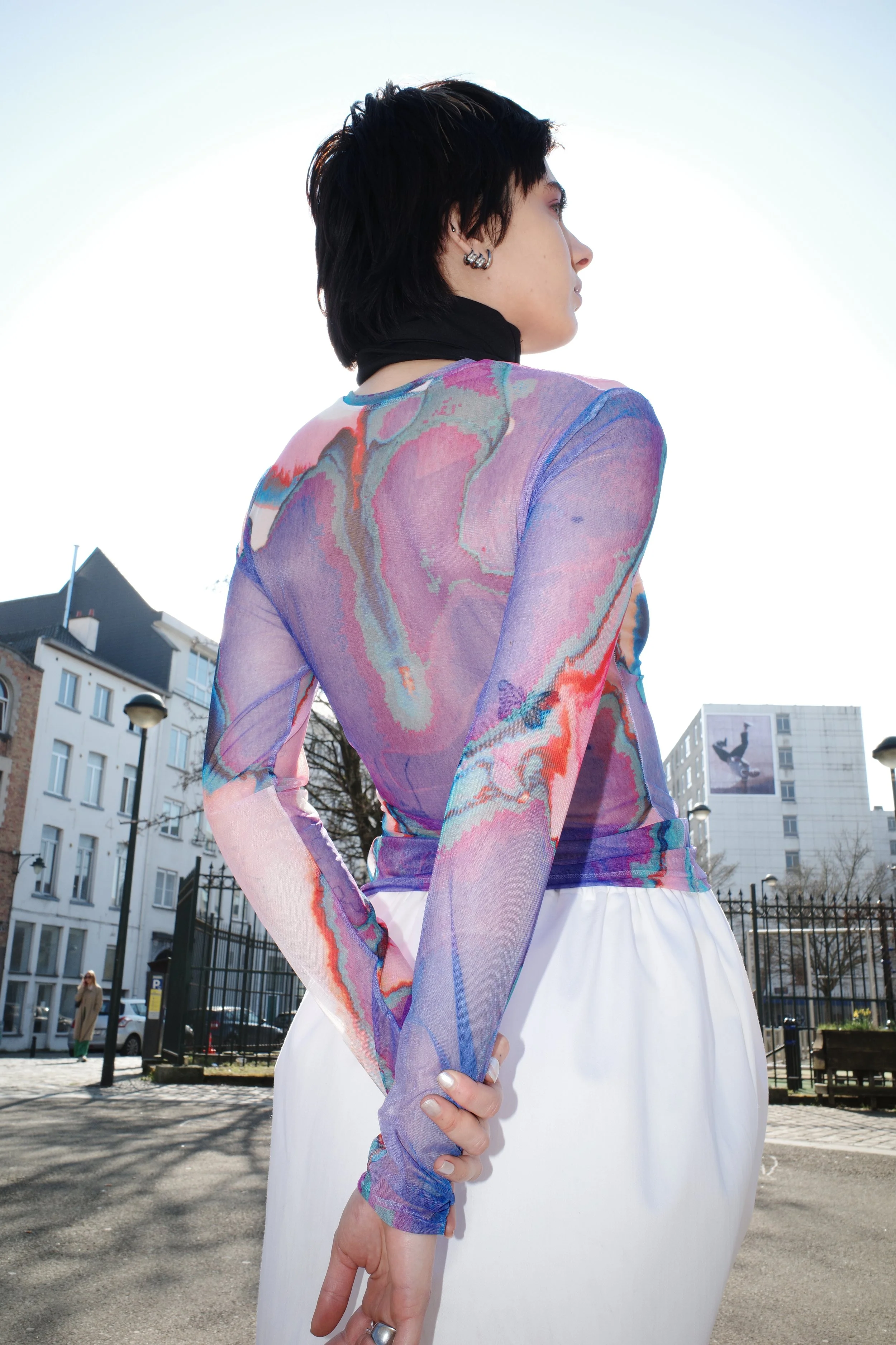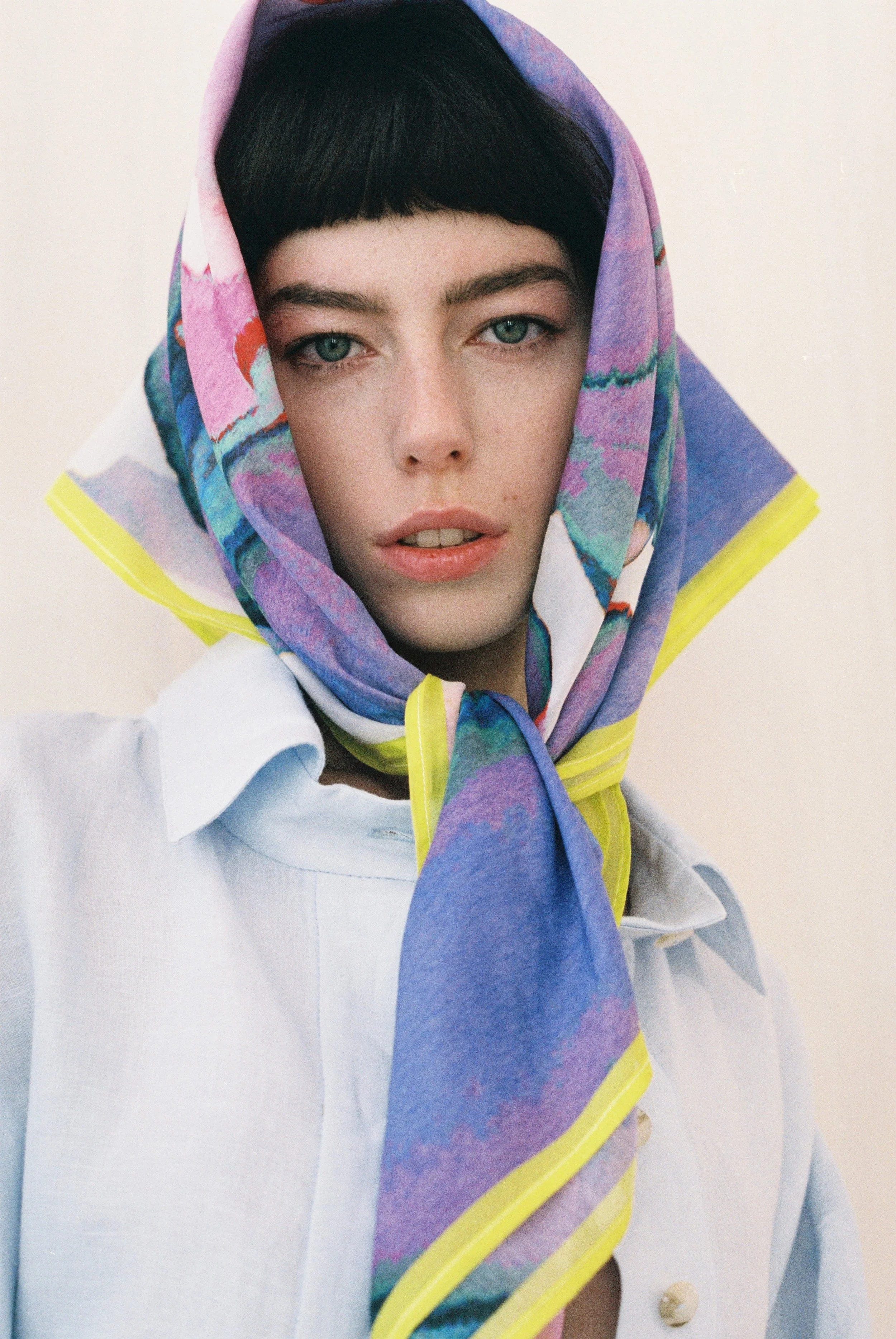 Each print is originally hand-painted by me, then digitally transformed and printed on fabric. These designs are part of the permanent collection and can be made to order, crafted by me in my studio.